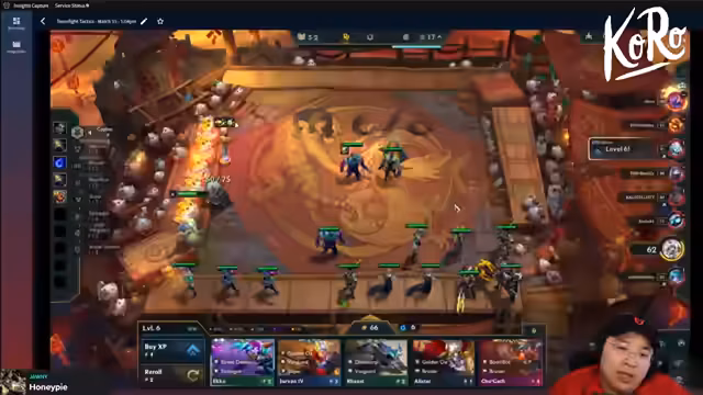 04:06:07Das Spiel nähert sich dem Ende. Der Streamer beschließt, eine Komposition mit Urgot und vier Boom Bots zu spielen. Er kauft den Urgott, um sein Team zu buffen, und ist fest entschlossen, schnell Level 9 zu erreichen. Die gegnerische Mundo Zyra-Komposition stellt eine massive Bedrohung dar. Die Entscheidungen der letzten Runden sind entscheidend, um das Spiel zu gewinnen oder die Top 2 zu erreichen.