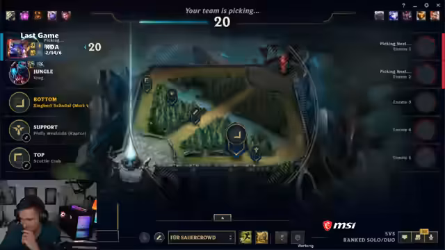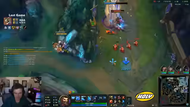 04:50:27Das Spiel beginnt mit einem frustrierenden Erlebnis auf der Top-Lane, bei dem der Champion sich als übermäßig schwierig erweist. Die Kommunikation im Team gestaltet sich ebenfalls holprig und unkoordiniert. Viele Entscheidungen, insbesondere die资源配置 und die Durchführung von Fights, werden als suboptimal und chaotisch empfunden. Der Streamer äußert die Ansicht, dass die Gegner durch einfaches Voranklicken und Drängen einen unfairen Vorteil erlangen, was als extrem ärgerlich und demotivierend empfunden wird.