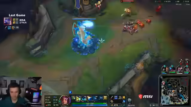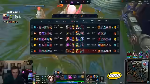 01:58:53Nachdem ein lang andauerndes League of Legends-Spiel scheinbar gewonnen werden konnte, ging es aufgrund wiederholter Fehler in der Top-Lane und im Jungle unglücklich verloren. Der Streamer ärgerte sich über seine eigene Leistung, besonders über die verpasste Sieger-Fähigkeit, und kritisierte die teuren Items, die sich im Endgame als unzureichend erwiesen. Trotz der Niederlage wurde das als an sich gutes Spiel wahrgenommen, wobei der Fokus auf den Frust über die verlorene Chance lag.