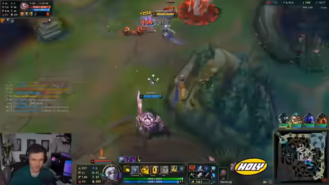 03:10:06Nach einer weiteren Niederlage, in der er stark unterlegen war, diskutierte der Streamer die design-technischen Probleme mit seinem Champion, der im hinteren Verlauf des Spiels kaum noch einen Impact hatte. Er kritisierte insbesondere das Quest-System, das ihn an eine Lane fesselte, obwohl es physisch nicht möglich war, dort die Quest fertigzustellen, und so das Gameplay negativ beeinflusste.