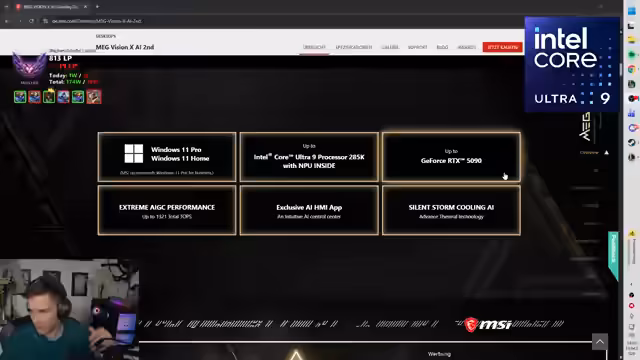 02:02:48Der Streamer unterbrach das Spielen, um einen neuen PC und einen Monitor des Sponsors MSI vorzustellen. Es handelte sich um das High-End-Modell 'Vision X AI Second' mit einem Core Ultra 9 Prozessor und eine MPG 271 QRDE QD OLED X50 mit 500 Hertz. Besonders hervorgehoben wurde das eingebaute Display-Widget im PC und die advanced OLED-Care-Technologie des Monitors, die Einbrennen verhindern soll. Die Präsentation diente auch als Werbung für die Produkte des Unternehmens.