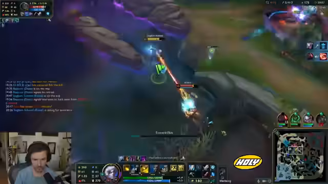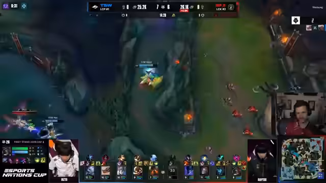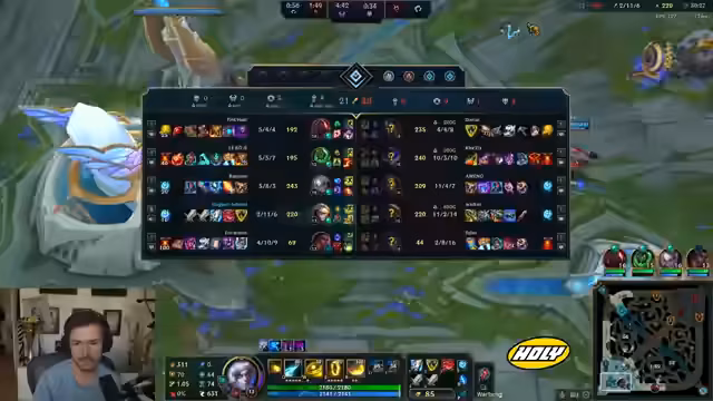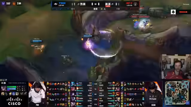 05:40:43Das Streamer kommentiert den Spielverlauf, insbesondere die Top-Lane, wo Wo die Bär als Volibear hart verliert. Es kommt zu mehreren Teamfights und Objekt-Kämpfen, darunter ein Schuss auf den Drake, aber ohne proper Gank. Es werden kritische Fehler wie ein schlechter Flash identifiziert, und es wird festgestellt, dass TSGs Draft darauf aufbaut, die Top-Lane zu gewinnen, was nicht gelingt und den Plan zunichtemacht. BFXs Power-Picks wie Volibear werden als effektiv bewertet.