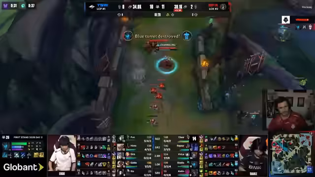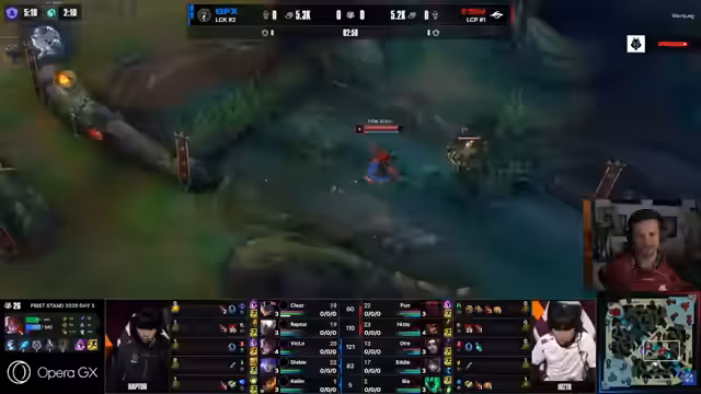 02:10:23Das erste Spiel beginnt mit einem verpasnten First-Blood für G2, was dem einen kleinen Goldvorteil verschafft. Die Top-Lane für G2 sieht jedoch bedrohlich aus, und die fehlende Dragoon-Ressource lässt den Streamer Sorge haben. BLGs Strategie, ein global agierendes Team mit Shen und Galio aufzubauen, beginnt Früchte zu tragen. Der Streamer betont die Bedeutung der Dragoon-Jäger für G2, um gegen die anstehende Barong-Kombination bestehen zu können. Obwohl G2 in einigen Situationen knappes Spiel hat, wächst der Druck durch die globale Präsenz von BLG.