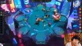 01:13:42Nachdem er sich als Vollidiot dafür bezeichnet, sich bis auf 1449 LP spielen zu lassen, versucht er, mit dem neuen Patch durchzustarten. Er wählt den Winstreak-Brand als Komposition, doch das Spiel verläuft katastrophal. Er konzentriert sich auf Item-Prios wie Edge of Night, ist aber unterlegen und verliert seine Einheiten schnell. Das führt zu Frustration, weil er keine Chance sieht, gegen die gegnerische Frontline zu bestehen.