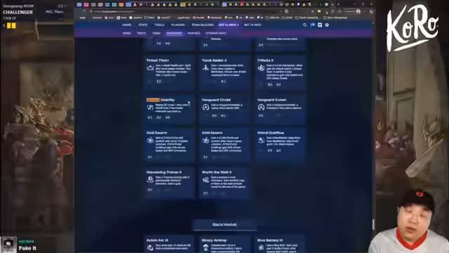 06:50:28Der Streamer überdenkt seine Rollstrategie und entscheidet sich zwischen verschiedenen Champions wie Yumi, Aphelios und Boombot. Er stellt fest, dass er einen zweiten Marksman benötigt und erkennt seinen Fehler, als er Cockwar für einen Marksman hält. Es werden verschiedene Item-Kombinationen wie Rageblade, Edge of Night und Gold Collector für Twisted Fate durchgesprochen, wobei der Fokus auf einer optimalen Itemauswahl liegt.