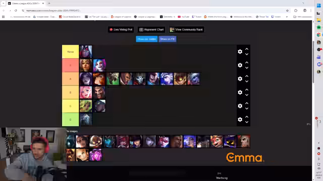 00:43:37Die D-Tier-Champions wie Viktor und Ezreal werden als in ihrer Daseinsberechtigung stark kritisiert. Viktor wird als Nischen-Pick angesehen, der kaum noch gespielt wird und die Liste unübersichtlich macht. Ezreal wird als unspielbarer Champion abgestempelt, der Riot nicht für Competitive reworken wird und im Solo-Q-Spiel wertlos ist. Die Streamer stellen die Sinnhaftigkeit der Aufnahme dieser Picks in Frage und diskutieren über die Mechaniken, die diesen Champions einen so geringen Stellenwert in der aktuellen Meta geben.