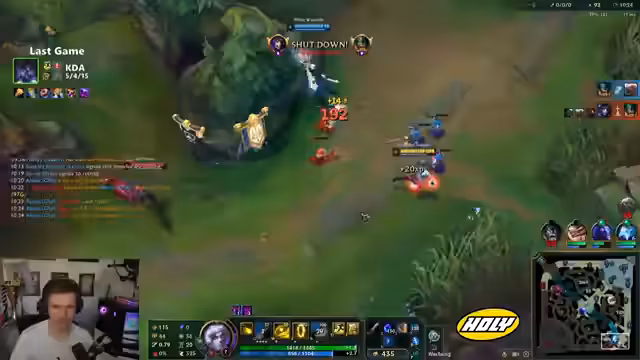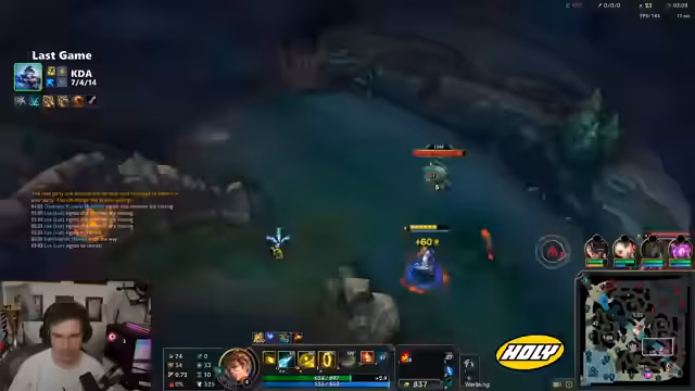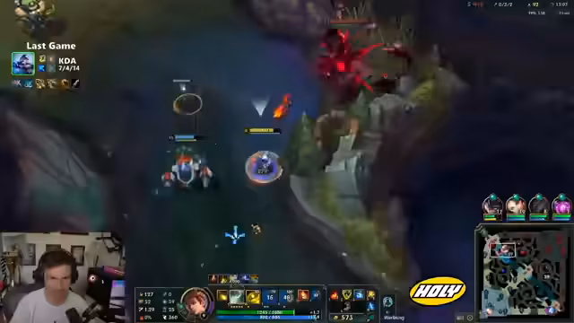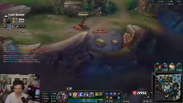 00:00:46Während der ersten Minuten des Spiels wird der Streamer mehrfach vom gegnerischen Jungler Naafiri invadiert und erlebt dadurch einen schlechten Start. Er erklärt, dass er aufgrund der fehlenden Priorität auf der Map keine Ganken durchführen kann und ständig unter Druck steht. Sein Teamkollege in der Midlane, Lux, spielt passiv, was die Situation noch verschlimmert. Der Streamer frägt sich, wie man Jungle spielen soll, wenn der gegnerische Midlaner permanent in der eigenen Jungle ist.