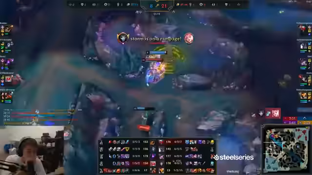 02:50:41Das Team setzt auf einen Split-Push mit Seraphine, der zumindest Bounties bringt, während parallel ein kritischer Drachenkampf stattfindet. Ein Flash Hook und eine schöne Bard-Ultimation führen beinahe zum Sieg und der Elimination der gegnerischen Syndra, doch das Team scheitert knapp und verliert den wichtigen Objective-Kampf. Der Streamer bewertet das Game als extrem unglücklich.