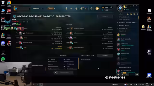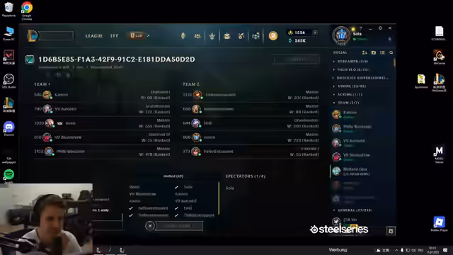 01:39:16Beim Versuch, ein Spiel auf dem chinesischen Server zu beobachten, treten massive technische Probleme auf. Der Streamer kann das Spiel nicht spectaten, vermutet ein Problem mit dem VPN und dem Serverzugriff. Er verweist die Zuschauer auf den Stream von 'Kutscha', um das Spiel weiterzuverfolgen, während er selbst auf sein Solo-Queue-Spiel umsteigt und die technischen Hürden thematisiert.