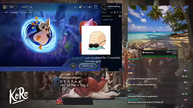 00:05:25Das Turnier startete planmäßig um 16 Uhr. Der Streamer benötigte für die Qualifikation zur Europameisterschaft zwischen 172 und 185 Punkte. Mit derzeit 115 Punkten bestand die Möglichkeit, sich für Tag 2 oder Tag 3 zu qualifizieren. Die Zielsetzung war klar: Ein sicherer Platz sollte erreicht werden, ohne dass es auf das letzte Spiel ankommt. Die Forderung an den Chat lautete, sich voll zu konzentrieren und auf Emotionen zu verzichten, um die bestmögliche Leistung im Turnier zu erbringen.