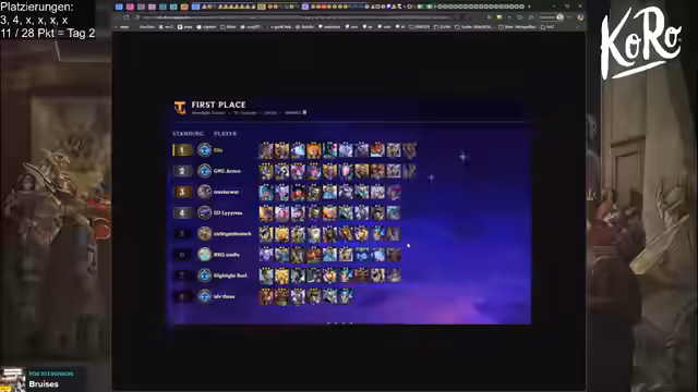 Ein ab 16 Uhr gestartetes Turnier bestimmte den weiteren Verlauf. Der Fokus lag auf Champions wie Aphelios und Zeri. Die Meta wurde als problematisch wahrgenommen, da AD-Bauten dominierten und das Spielgeschehen einseitig wirkte. Trotzdem wurden verschiedene Kombinationen getestet, um sich für den nächsten Turniertag zu qualifizieren.