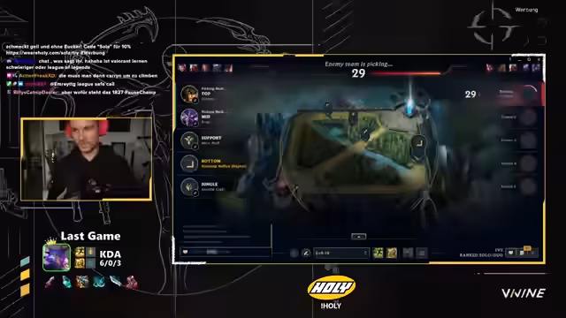 00:12:51Der Streamer äußert sich positiv über die PTA-Runen (Press the Attack), die sich 'ziemlich gut' anfühlen, obwohl er sie erst ein- oder zweimal proccen konnte. Er merkt an, dass er aktuell nur den Twitch-Chat sehen kann und fragt sich, wie er beide Chats gleichzeitig im Blick behalten kann. Das Spiel läuft gut, und er ist gespannt, wie es auf Level 6 weitergeht. Ein erfolgreicher 'Bubble'-Einsatz der Nami wird gelobt. Er erwähnt auch die Möglichkeit, auf TikTok live zu gehen, ist aber unsicher, ob dies sinnvoll ist, da er die Aufmerksamkeitsspanne dort als zu gering für Gameplay-Streams einschätzt. Er reflektiert über MF-Builds und erwähnt, dass Doublelift oft Axiom Arc als erstes Item baut. Trotz eines Vorsprungs im Spiel warnt er vor Nautilus' Level-6-Fähigkeit, die bei einem Hook schwierig werden kann. Ein unerwarteter Drake-Steal durch den gegnerischen Zed wird als 'crazy' und 'Schlingel' kommentiert. Er diskutiert die Item-Wahl, insbesondere die Rolle von Bloodthirster (BT) auf MF, und entscheidet sich, bei Builds zu bleiben, die eine hohe Winrate haben, aber auch das zu kaufen, was sich gut anfühlt. Das Spiel nimmt eine Wendung, als ein missglückter Kampf am Herald und verlorene Objectives zu einem Rückstand führen, der dem gegnerischen Zed einen erheblichen Vorteil verschafft.