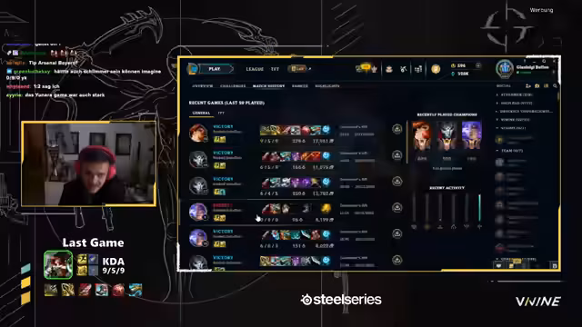 02:01:06Der Streamer untersucht den Account der Seraphine-Spielerin und stellt fest, dass sie ein Support-Main ist, der diese Season bei 900 LP Grandmaster war und nun auf 100 LP Master spielt. Dies erklärt für ihn die schlechte Leistung und die 'Ausrede für alles'. Er kritisiert Riot dafür, dass ein 400 LP Master Midlane-Main gegen einen 100 LP Master Support-Main spielt, was einem Skill-Unterschied von über 1000 LP entspricht. Er vergleicht dies mit einem Goldspieler, der gegen einen Bronzespieler in der Midlane antritt. Obwohl er zugibt, dass Seraphine vielleicht absichtlich 'gerannt' ist, glaubt er, dass selbst eine Emerald-Seraphine nicht 0-9 gehen würde. Er ist mit den Spielen des Tages unzufrieden, da sie trotz guter eigener Leistung 2-2 stehen und zwei 'unwinnable' Games hatten. Er empfindet MF als einen 'Alibi-Champion', der zwar eine gute Winrate hat, aber keine extrem hohe. Er fragt sich, ob das Matchmaking in diesem Patch 'absolut fuckt' und seit einigen Wochen deutlich schlechter ist, mit häufigeren 500 LP Unterschieden.