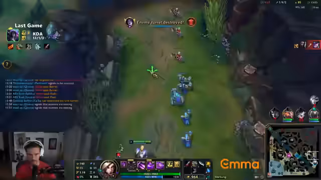 01:41:29Der Streamer beschäftigt sich mit der häufigen Frage, wie man die Map-Awareness im Spiel verbessern kann. Seine Analyse ist, dass die Fähigkeit, die Karte im Auge zu behalten, stark von der Vertrautheit mit dem gespielten Champion abhängt. Wenn man einen Champion perfekt beherrscht, muss man sich nicht mehr auf die Mechanik konzentrieren und kann sich stattdessen voll auf die Karte fokussieren. Bei neuen oder komplexen Champions leidet die Map-Awareness jedoch, da das Gehirn mit der Ausführung der grundlegenden Fähigkeiten ausgelastet ist. Sein Tipp ist daher: Perfektioniere deine Champions, um gleichzeitig deine Spielübersicht zu verbessern.