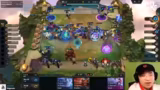 02:16:00Ein unerwarteter Unit-Drop, Zack, zwingt den Streamer, seinen Gameplan schnell anzupassen. Zack dient als Ersatz für die ursprünglich geplante Unit Shaco und verändert die gesamte Aufstellung. Die Änderung wird als 'my bad' eingestanden, da sie zu einer chaotischen Positionierung führt, die insbesondere die Wirkung von Sejuani's Ulti behindert. Der Streamer muss nun schnell eine neue Unit finden, um den verpassten Shaco zu ersetzen und seine Win-Condition mit Miss Fortune wiederherzustellen.