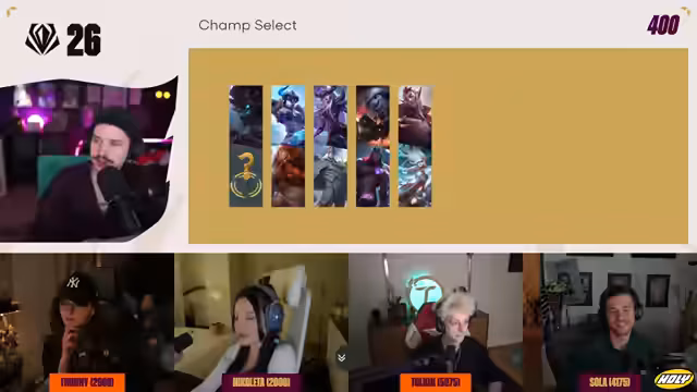 03:45:56Im Anschluss an das Quiz bereitet sich der Streamer auf ein wichtiges Unilega-Spiel vor. Er analysiert den gegnerischen Roster und stellt fest, dass dieser Picks wie Olaf, Varus und Seraphine spielt. Gemeinsam mit seinem Team wird eine Strategie erarbeitet, die Bans für Olaf, Ryze und Poppy in Betracht zieht, um die Stärken des Gegners zu neutralisieren. Das Ziel ist es, das Spiel zu gewinnen, um sicher in die Playoffs einzuziehen.