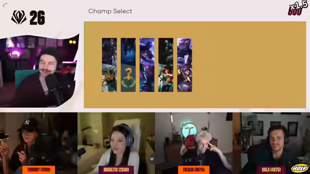 03:03:15Die Quizrunde geht mit einer Champ-Select Kategorie weiter. Hierbei sehen die Teilnehmer eine Champion-Auswahl aus einem legendären Spiel und müssen den durch einen Fragezeichen-Ping ersetzten Champion identifizieren. Eine weitere Runde dreht sich um die Analyse von Statistiken, bei denen beispielsweise die Präsenz von Champions in der Pick/Ban-Phase oder die Anzahl der Pentakills im Proplay abgefragt wird, was Fachwissen über die Meta und die Geschichte des Spiels voraussetzt.