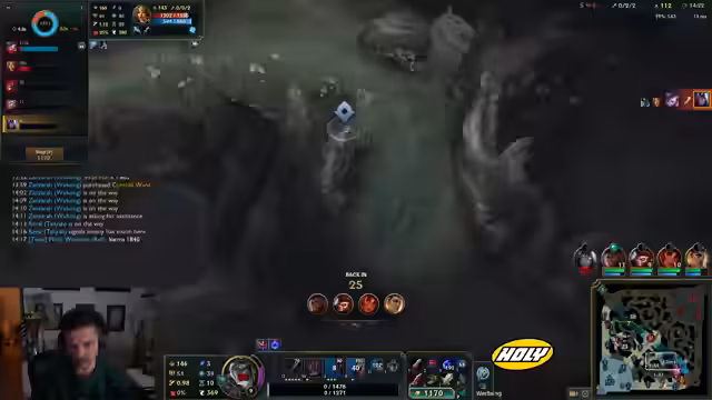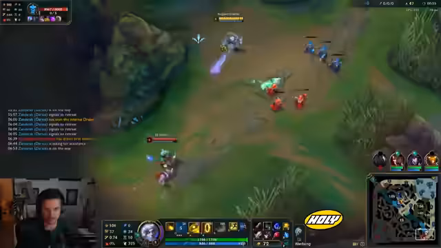 00:04:37Die Aufmerksamkeit richtet sich auf ein aktuelles League-of-Legends-Spiel, speziell auf die Level-1-Situation und die Laning-Phase. Der Streamer analysiert die Picks wie Nautilus und Sivir sowie die Gegner-Komposition mit Nocturne und Kassadin. Es werden konkrete taktische Entscheidungen besprochen, wie die Handhabung der ersten Welle, das Positionieren, um eine günstige Level-1-Engagement zu vermeiden, und der Umgang mit dem gegnerischen Jungler. Der Streamer betrachtet verschiedene Strategien wie Wave-Crashen, Recoilen und das Verwalten der Minions, um einen Vorteil zu erzielen oder Druck auszuüben.