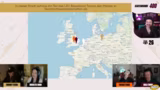 00:54:17Das Quiz startet mit den ersten Fragen in den Kategorien 'E-Sport Trivia', 'Teammates', 'Codenames' und 'Kartenkunde'. Bei der 'Teammates'-Frage müssen die Teilnehmer einen Profispieler identifizieren, der mit fünf vorgegebenen Spielern gespielt hat. Die 'Kartenkunde'-Frage erfordert das Finden des Landes der vergangenen First-State-Austragung. Die Teilnehmer interagieren aktiv, geben via Buzzern und Textfeldern Antworten ab. Die Ergebnisse werden live bewertet und ausgezählt, wobei teilweise knifflige Fragen für Aufregung und humoristische Momente sorgen, wie bei der 'Teammates'-Frage zu Wicked, die viel Überlegung erfordert.