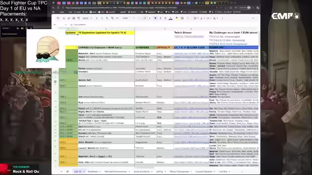 00:04:37Es wurde viel Vorbereitung betrieben, indem Wiederholungen im Discord angeschaut wurden, um neue Erkenntnisse zu gewinnen. Das Turnier ist ein Nordamerika gegen Europa Event, was die späte Startzeit erklärt. Erste Spieleindrücke zeigen, dass Spear Will eine akzeptable Wahl ist, während Clouded Mind und Shadow Clone in Kombination mit Doppel-Nafiri eine schwierige Situation darstellen. Der Streamer analysiert vergangene Spiele, darunter ein Steam Spot Soul Fighter Game, das sich als unsicher erwiesen hat, und ein Doppel-Gin Mundo Game. Er beantwortet Fragen aus dem Chat zum Turnierformat, das vorsieht, dass jede Gruppe nur unter sich spielt und keine Begegnungen mit der anderen Gruppe stattfinden. Es wird überlegt, welche Boards am stärksten sind, wobei Varus als teure, aber starke Option genannt wird, aber auch andere vielversprechende Kompositionen in Betracht gezogen werden. Der Fokus liegt auf Flexibilität im Spielstil, wobei ein Mentor Rise später im Spiel gesucht wird.