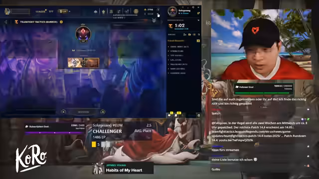 02:04:50Der Stream konzentriert sich auf ein intensives Gameplay mit dem Ziel, durch gezieltes Item-Swapping und -Farming eine starke Komposition aufzubauen. Dabei werden kritische Items wie Rabanudes, Morellonomikon und Kageys Schicksalswalze aktiv gesucht und zwischen Einheiten ausgetauscht. Besonders hervorgehoben wird eine problematische Begegnung mit einer gegnerischen Poppy, die den Streamer mehrmals eliminierte und einen strategischen Rückzug von Ziggs erzwang, trotz der daraufhin stabilisierten Front und suboptimaler Items.