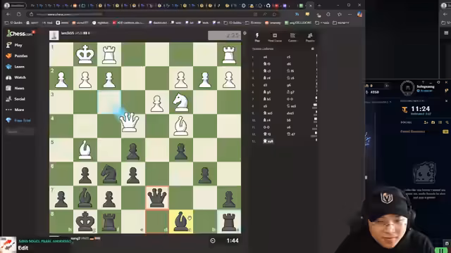 01:29:11Zwischen den Spielen nutzt der Streamer die Zeit, um mit dem Chat zu interagieren und auf verschiedene Themen einzugehen. Er erwähnt, dass er gerne Schach spielt, egal ob er gewinnt oder verliert, und stellt fest, dass Gegner 'Sezillian' spielen und 'Queen's Gambit' verwenden. Es werden verschiedene Themen wie League of Legends, TFT und persönliche Geschichten wie das Essen von Spaghetti-Eis angesprochen. Der Streamer betont, dass er sich auf das Gameplay konzentrieren will, aber dennoch für den Chat da ist.