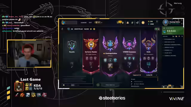00:09:40Der Streamer beginnt den Stream mit der Absicht, den Champion Sahin zum ersten Mal zu spielen. Er überlegt, welcher Spielmodus am besten geeignet wäre, um Sahin auszuprobieren, und entscheidet sich für Swift Play, obwohl er Bedenken wegen der möglicherweise langen Wartezeiten hat. Es stellt sich heraus, dass Sahin in diesem Modus nur auf einer Rolle ausgewählt werden kann, was die Planung erschwert. Der Streamer lädt daraufhin Zuschauer ein, um das Team zu füllen und die Wartezeit zu verkürzen. Er betont, dass er keine Botlane spielen möchte und sucht vier Mitspieler für ein Swift Play. Trotz einiger Schwierigkeiten bei der Teambildung, wie der Ablehnung einer Einladung von 'Bröki' und dem versehentlichen Löschen eines Freundes von der Freundesliste, gelingt es schließlich, ein Team zusammenzustellen. Der Plan für Sahin ist der Bau von Triforce, gefolgt von Sundered Sky und Steraks, mit Q als primärem Skill-Max.