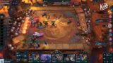 00:16:24Im mittleren Spiel stehen strategische Entscheidungen im Vordergrund, insbesondere das Management von Items wie Bow und Blade Fighter (BF). Die Spieler kommunizieren intensiv über den Bedarf ihrer Mitspieler, z. B. sucht Nilo BF und Hyrule sucht ebenfalls BF. Es werden auch synergistische Kombinationen wie Wex und Z sowie das Halten von Champions wie Leona diskutiert, um den Vorteil im Spiel zu sichern.