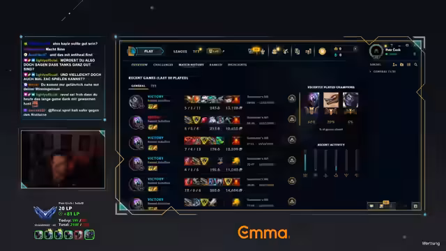 00:01:42Nach dem Start des Streams kündigt der Streamer eine entspannte Runde mit dem Champion Jax an. Er erwähnt, dass er das Gefühl hat, wieder krank zu werden, und äußert Frustration über das bisherige Jahr. Parallel dazu wird die offizielle Ankündigung für ein nächstjähriges Turnier des Kanals gemacht, was als positives Highlight des Beginns gilt.