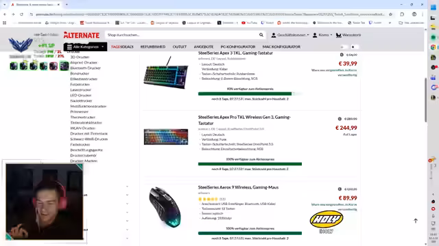 02:08:30Es wird auf eine unerwartete Partnerschaft mit Holzkern hingewiesen, die exklusive Rabatte für Weihnachtseinkänge bietet. Parallel wird der SteelSeries Xmas Sale bei Alternate beworben, der bis zu 37% Rabatt auf Gaming-Zubehör wie Tastaturen und Mäuse gewährt. Besonders hervorgehoben werden platzsparend 10-Keyless-Modelle und kabellose Geräte, die als besonders effizient beschrieben werden. Die Promotion wird als strategische Kooperation präsentiert, die Zuschauern finanzielle Vorteile bietet.