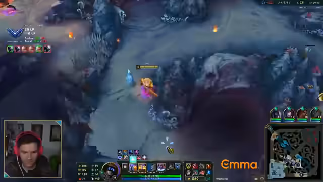 00:14:16Ein entscheidender Fehler führt zu einem schnellen Tod gegen einen gegnerischen Chogath, was zu großer Frustration führt. Der Streamer kritisiert sich selbst dafür, auf die Anweisungen der Lanes zu hören und so in eine tödliche Falle zu laufen. Das Spiel verschlechtert sich zusehends, da das Team mehrere Objectives verliert und der gegnerische Jungle stark aufkommmt.