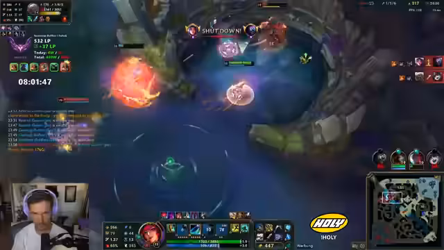 02:07:58Es wird die Frage diskutiert, warum BT (Bloodthirster) vor 100% Crit gebaut wurde, was der Streamer damit beantwortet, dass 100% Crit nicht immer wertvoller als 75% Crit sind und BT in dem spezifischen Spiel gegen Squishy-Gegner mit Poke eine gute Wahl darstellt, da es ermöglicht, sich schnell an Minion-Wellen hochzuheilen. Der Streamer äußert sich ablehnend gegenüber Voice-Chat in League of Legends, da er glaubt, dass es das Spielerlebnis negativ beeinflussen würde. Er argumentiert, dass SoloQ dadurch anstrengender und weniger angenehm würde. Er glaubt nicht, dass Voice-Chat die Gamequalität verbessern würde, da die Hauptprobleme in SoloQ nicht durch fehlende Kommunikation entstehen, sondern durch unterschiedliche Skillsets und zufällige Faktoren. Er befürchtet, dass Voice-Chat die Tilt-Spirale verstärken könnte, da man negative Beobachtungen direkter kommunizieren könnte. Der Streamer ist der Meinung, dass League of Legends ohne Voice-Chat so erfolgreich geworden ist, weil es ermöglicht, entspannt stundenlang zu spielen, ohne den Stress der mündlichen Kommunikation.