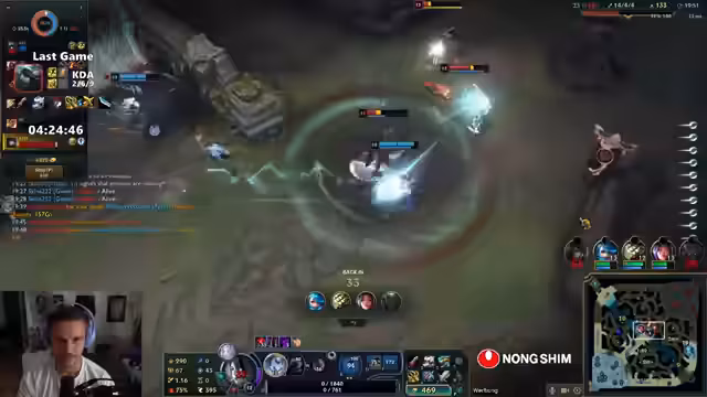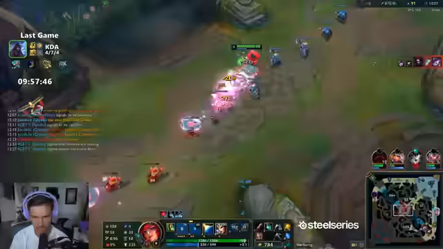 02:16:39Der Streamer kritisiert einen Pyke-Spieler für dumme Aktionen trotz vorhandener Informationen über die Position des gegnerischen Junglers. Er räumt ein, dass Voice-Chat in solchen Situationen möglicherweise helfen könnte, ist aber skeptisch. Es wird die passive Spielweise eines anderen Pyke-Spielers bemängelt. Der Streamer spricht über die Schwierigkeit, gegen Lucian zu spielen und erwähnt einen wiederkehrenden Gegner namens "Rizzler 3000". Er äußert sich kritisch über Mitspieler, die trotz schlechter Leistung Toplane weiterhin spielen. Der Streamer betont, dass Voice-Chat das Spiel anstrengender macht und vergleicht es mit dem Streamen, das ebenfalls zusätzliche Anstrengung erfordert. Er beschreibt ein Spiel, in dem die Toplane dominiert wird und die Botlane Schwierigkeiten hat, was zu einem harten Spiel führt. Der Streamer reflektiert über verlorene Spiele, die oft durch Fehler in der Toplane verursacht werden, und erwähnt einen Pantheon-Spieler, der wiederholt schlecht spielt.