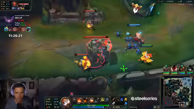 00:03:26Der Stream beginnt mit dem Willen, den Schatten des Vortages hinter sich zu lassen und eine positive Spielsession zu starten. Nach einer kurzen Überlegung, ob ein Aphelios-Tag eingelegt werden soll, entscheidet sich der Streamer, zunächst andere Champions zu spielen. Es folgt eine Diskussion über mögliche Botlane-Kombinationen, einschließlich Pantheon Talia, wobei die aktuelle Stärke von Talia im Early-Game infrage gestellt wird. Die Wahl fällt schließlich auf Rakan, trotz eines "nasty Enemy Drafts". Vor dem Spielstart wird noch kurz Werbung geschaltet, um während des Spiels keine Unterbrechungen zu haben. Die frühe Phase des Spiels verläuft positiv mit einem gewonnenen Botlane, aber der Streamer äußert Bedenken hinsichtlich eines möglichen Tunnel-Jungle des Gegners und der Notwendigkeit, proaktiv zu spielen, um das Spielgeschehen zu beeinflussen. Es wird ein riskantes Spielverhalten beobachtet, was zu unnötigen Toden führt, aber insgesamt wird die Situation als noch "fein" eingeschätzt.