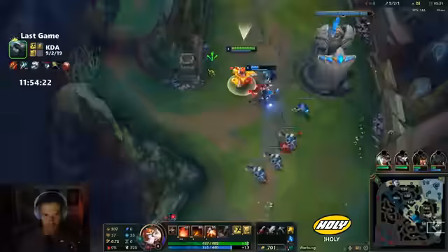 09:19:20Das Team sollte anfangen, Objectives zu nehmen und Vision für die Cutter zu spielen. Ein Gegner nähert sich, und es wird vermutet, dass sich ein Yi im River befindet. Der Streamer hat Leona Ult bereit. Es werden Wards platziert, um die Mitte zu sichern. Der Streamer äußert den Wunsch, sich zurückzuziehen, aber das Team will noch nicht. Es wird überlebt, wie der Gegner überlebt hat. Der Streamer macht einen schlechten Call. Es wird diskutiert, ob ein Phantom Dancer Gin sinnvoll wäre. Das Team ist Bounties wert, da sie fünf Kills, einen Drake und zwei Türme haben. Die Katharina spielt wahrscheinlich aus China. Der Streamer macht die No-Kill-Challenge. Der Damage Check des Teams ist erfolgreich. Der Streamer wird von Senna gechased, da diese mehr Movement Speed Items hat. Der Streamer hat viel Gold und möchte das Spiel mit drei Items beenden, was aber ungünstig wäre.