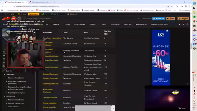 07:17:14Der Streamer betritt das Desolace-Gebiet und schildert sofort die großen Gefahren. Er beschreibt die Wege als gefährlich und weist auf die Horde-Spieler hin, die Allianz-Spieler angreifen, wenn diese PvP-gefleckt sind. Das Gebiet wird als extrem asozial und stressig beschrieben, da viele feindliche Spieler lauern. Besonders erwähnt er das Auftreten von Schurken, die auf gefleckte Spieler warten, und betont die ständige Notwendigkeit, vorsichtig zu sein.