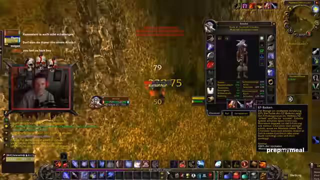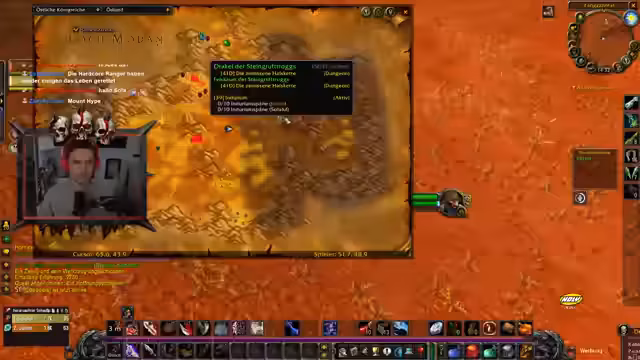 03:43:07Der Stream beginnt mit einer intensiven Diskussion über das aktuelle Gameplay, insbesondere die extrem schwankende Dauer zum Besiegen von Gegnern. Einmal werden Mobs in wenigen Sekunden erledigt, andere Mal dauert es bis zu zwei Minuten. Der Streamer analysiert seine Ausrüstung, insbesondere den hohen Crit-Wert und die Auswirkungen von Items, die seine Lebenspunkte reduzierten. Eine Diskussion über das Reiten und die damit verbundenen Beschränkungen innerhalb von Gebäuden folgt, sowie ein Streit über die Richtung zum Drudenlehrer und die Farbgebung des Buffs, der wie ein Transmog aussieht.