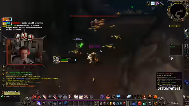 08:37:14Der Streamer plant, sein Level 40 in World of Warcraft abzuschließen, bevor die League of Legends-Saison startet. Es ist geplant, für die Dauer der Saison den Fokus auf League zu legen, im Verhältnis 70 zu 30. Dabei wird ein Split zwischen den beiden Spielen vorgeschlagen. Er erwähnt, dass ein Spieler namens Mori eine League-Challenge am Tag vor dem Saisonstart machen wird. Die Diskussion umfasst auch Spielstrategie, wie z.B. das Nutzen von Ruhesteinen, ohne das zu kommentieren, und die Wahl der Route, falls PvP-Flankierung erfolgt.