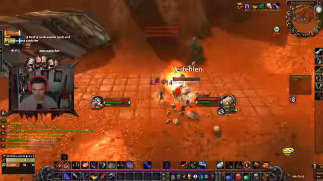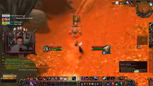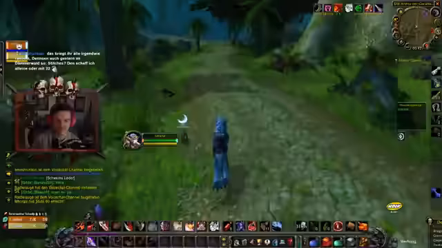 02:00:27Das Erreichen von Level 40 stand kurz bevor und wurde als großer Moment gefeiert. Gleichzeitig gab es Enttäuschungen, weil für geplante Dungeons wie Scholomance nicht genug Spieler gefunden werden konnten. Ein häufiges Problem waren Server-Layer, die es unmöglich machten, bestimmte Spieler zu sehen und mit ihnen zu interagieren, selbst wenn sie sich in derselben Region befanden.