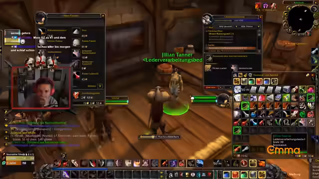 12:33:09Gegen Ende der Session ist der Streamer zunehmend erschöpft, ist aber entschlossen, noch einiges zu erreichen. Er kündigt an, noch seine Lederverarbeitung auf Maximum zu bringen und blickt auf die vergangenen Tage zurück, in denen er fast zehn Tage ununterbrochen gelevelt hat. Für den nächsten Tag plant er, ein paar Level weiter zu pushen, bevor die WoW-Session endgültig pausiert.