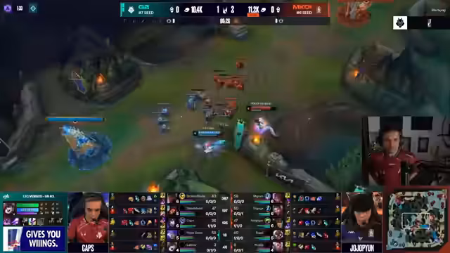 01:51:48Die individuelle Leistung der Spieler steht im Mittelpunkt. Skymond wird für sein 'insane' Gameplay gelobt, besonders auf Jace, während Jojo auf Ashe als problematisch dargestellt wird. Es wird die Hypothese aufgestellt, dass MKOI 'sehr stark am unterperformen' ist, sowohl gameplay- als auch drafting-wise. Caps wird für seine aggressiven Plays und das 'Free Hitten' der ganzen Zeit gelobt, während Mervyn kritisiert wird, weil er 'zu spät den Knaller zünden' muss.