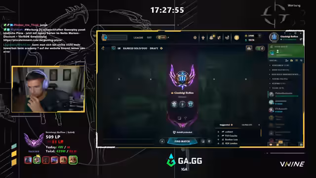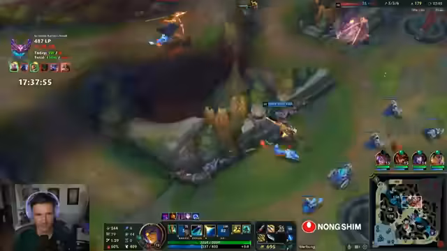 11:22:14Es wird die wachsende Frustration über die fehlenden Erfolge im Spiel zum Ausdruck gebracht, die dazu führt, dass die getroffenen Entscheidungen in Frage gestellt werden. Es wird die Faustregel erwähnt, nach 22 Uhr kein League of Legends mehr zu spielen, und der bevorstehende Regelbruch angekündigt. Trotz des Gefühls, dass alles, was man tut, falsch ist, wird beschlossen, weiterzuspielen, jedoch nicht mehr für Elo, sondern nur noch für den Timer. Es wird die Hoffnung geäußert, dass ein bestimmtes Spiel ein Wendepunkt sein wird. Es wird die Frage aufgeworfen, ob man Draven spielen sollte, aber entschieden, dass es noch zu früh dafür ist. Es wird erwähnt, dass man sich müde und betrunken fühlt, aber trotzdem noch ein Ranked-Spiel spielen möchte.