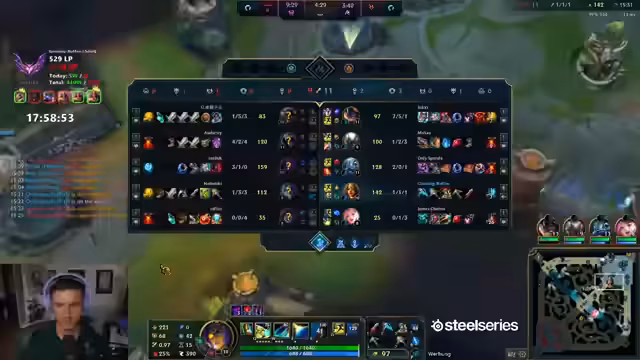 09:22:16Der Streamer analysiert die Strategien des Gegners und die Auswirkungen auf den Spielverlauf. Er identifiziert die Syndra als das größte Problem und diskutiert, wie man sie ausschalten kann. Er analysiert die Item-Builds und die Stärken und Schwächen der gegnerischen Champions. Er überlegt, wie man den Jax aufhalten kann, der das Spiel dominiert. Er diskutiert die Bedeutung von Teamarbeit und Koordination, um im Spiel erfolgreich zu sein. Er reflektiert über vergangene Fehler und wie diese den Gegnern Vorteile verschafft haben. Er spricht über die Notwendigkeit, sich an veränderte Spielsituationen anzupassen und flexibel auf unerwartete Ereignisse zu reagieren. Er kommentiert die Effektivität verschiedener Champions und Builds und vergleicht diese mit seinen eigenen Erfahrungen.