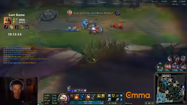 04:01:34Es wird über den verursachten Schaden und die Rolle der Orianna im Spiel gesprochen. Fragen aus dem Chat werden beantwortet, beispielsweise zur Verfügbarkeit von Merch und zu den Sabaton-Regeln. Es wird über die Definition von "Broken" in Bezug auf Champions diskutiert und Fiddlesticks als Beispiel genannt. Die Bedeutung von Solo-Q und ProPlay wird verglichen. Es wird die Vielseitigkeit von Serien hervorgehoben und überlegt, welche Champions gut mit ihr harmonieren. Die aktuelle Teamzusammensetzung wird analysiert und überlegt, welcher Champion am besten geeignet ist. Es wird überlegt, ob man Arry anstelle von Spellbook spielen soll und die Schwierigkeiten mit der aktuellen Teamkonstellation thematisiert. Es wird sich über Top-Gap beschwert. Der angepinnte Kommentar verschwindet immer wieder. Es wird überlegt, ob man Nash machen soll und wie die Gegner reagieren werden. Es wird die hohe AD des Gegners kommentiert und die Notwendigkeit betont, die Gegner zu "lösen". Es wird überlegt, ob man nach Boris oder LDA gehen soll und die Bedeutung von drei Drakes hervorgehoben. Es wird überlegt, wie man gegen Randoids vorgehen kann und die Dummheit des eigenen Teams beklagt. Es wird überlegt, wie man am besten crossmappen kann und die Bedeutung von Elissa hervorgehoben. Es wird überlegt, ob man den dritten Drake holen kann und wie man 5 gegen 5 gewinnen kann. Es wird überlegt, wie man den Top-Turm einnehmen kann und die Bedeutung von Serienbomben im TP hervorgehoben. Es wird überlegt, ob man Nash contesten kann und wie man den Afterfall spielen kann. Es wird überlegt, ob man Botlane gucken soll und warum die Toplane nicht waveclearen. Am Ende wird das Spiel verloren und die Gründe dafür analysiert. Es wird angekündigt, dass es noch 16 Stunden bis zum Ende des Sabathons sind. Es wird sich über den Draft und die Performance der Mitspieler beschwert, aber auch die eigene Leistung gelobt. Es werden die Sabaton-Regeln erklärt und auf den neuen V9 Drop hingewiesen. Es wird auf den Shop hingewiesen, in dem es Hoodies, Shirts, Jackets und Jogger gibt. Es wird sich über die Größe der Hoodies ausgetauscht und angekündigt, dass man heute beim Corki bleiben wird. Es wird angekündigt, dass man das Tierlist-Video von Jack Spectra weitergucken wird und überlegt, ob man die Yonara zocken soll. Es wird sich überlegt, ob man wieder die Educational-Schiene verfolgen soll und ob man einen Buchclub für AD Carry starten soll.
