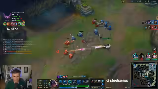 07:52:46Es wird die aktuelle Leistung mit Sivir im Spiel analysiert, wobei festgestellt wird, dass der Champion im Winning Team eine hohe Siegwahrscheinlichkeit bietet, aber in verlorenen Spielen kaum Einfluss hat. Der Streamer beschreibt Sivir als Spectator in solchen Situationen und äußert Frustration darüber. Er räumt ein, dass dies für viele ADCs gilt, aber Sivir sich besonders hilflos anfühlt. Es wird betont, dass Sivir statistisch gesehen stark ist, aber wenig Spaß macht und man sich medizinisch untersuchen lassen sollte, wenn man mit ihr Spaß hat. Die Frage wird aufgeworfen, welcher ADC in der aktuellen Situation eine bessere Wahl gewesen wäre, angesichts des griefenden Top-Laners und des gegnerischen Teams. Sivir wird als nützlich in ausgeglichenen oder leicht vorteilhaften Spielen beschrieben, aber als unbrauchbar in stark nachteiligen Situationen. Es wird der Trugschluss angesprochen, dass ein anderer ADC sich in dieser Situation besser angefühlt hätte, obwohl dies unwahrscheinlich ist. Der Streamer ist insgesamt unzufrieden mit Sivir als Blind Pick und sucht nach einem geeigneten Blind-Pick-Champion für die Botlane.