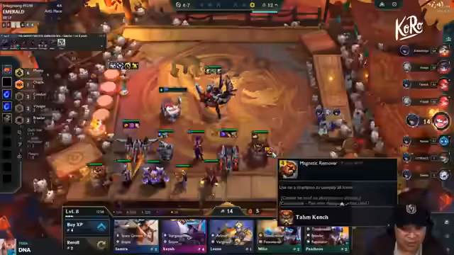 01:35:10Der Streamer ist aktiv auf der Suche nach spezifischen Items für seine Champions wie Teemo und Leona. Er erwägt verschiedene Kombinationen wie Notfall-Steadfast oder Sunfire für den Tank. Bei der Entwicklung seiner Comp konzentriert er sich auf den Aufbau von Four Vengards für die LeBlanc-Kombo und die Notwendigkeit von guter Wirtschaft und Timing für den Erfolg.