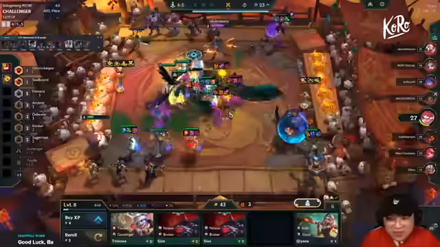 07:47:01Die aktuelle Runde wird von fünf Spielern gespielt, die alle auf das Build-Sporter-Emblem setzen. Dies führt dazu, dass die relevanten Einheiten wie Fizz extrem hart umkämpft und daher schwierig zu finden sind. Der Streamer verfolgt den Spielstand von Moritz, der ebenfalls eine Build-Sorter-Strategie verfolgt. Er beschreibt die Schwierigkeiten, da Moritz benötigte Items wie Bel'Veth nicht findet und sich mit der Economy nicht stabilisieren kann. Trotzdem bleibt die Kombo eine solide Option, um Top 4 zu erreichen, solange genug Gold generiert wird.
