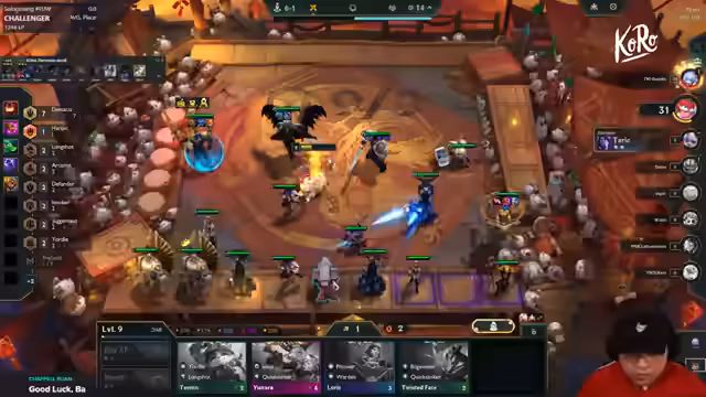 06:28:36Nachdem Mundo und Tham freigeschaltet wurden, wird die Priorität auf Nautilus und Tham als Late-Game-Hard Carrys gelegt. Tham erhält Strike-Items, um Gegner auszuschalten und Ressourcen abzugeben. Moritz stabilisiert sein Team und zielt auf ein schnelles Erreichen von Level 9 ab, hat aber wenig Gold für Upgrades. Die Suche nach Items wie Titans oder Quicksilber wird schwierig, da wichtige Einheiten wie Illaoi zu früh eliminiert werden.