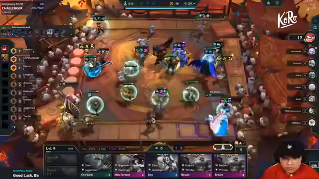 06:03:51Ein Spieler namens Riven demonstriert die extreme Stärke der Bild-Sporter-Kombi im Late Game. Er bereits in Stage 2 sieben Bildschwörter findet und diese bis ins Endgame durchhält. Der Streamer erklärt, dass das Behalten von Legendaries wie Wukong auf Level 2 und das Finden von wichtigen Items wie Time Catch den Schlüssel zum Sieg darstellt. Trotz Fizz-Gefahr, den Riven mit cleverem Positioning umgeht, gewinnt er das Game souverän und zeigt den Power-Spike der Kombo.