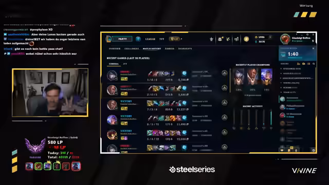 01:20:40Nach einer Reihe von Niederlagen entschließt sich der Streamer, sich von experimentellen Musik-Playlists zu verabschieden und 'back to the basics' zu gehen. Er erwähnt einen Wechsel auf die Plattform E-West, um das Elo-System zu durchbrechen. Er kündigt an, den Aphelios zu picken, da er der Meinung ist, dass dieser Champion ihm eine höhere Elo verdient.